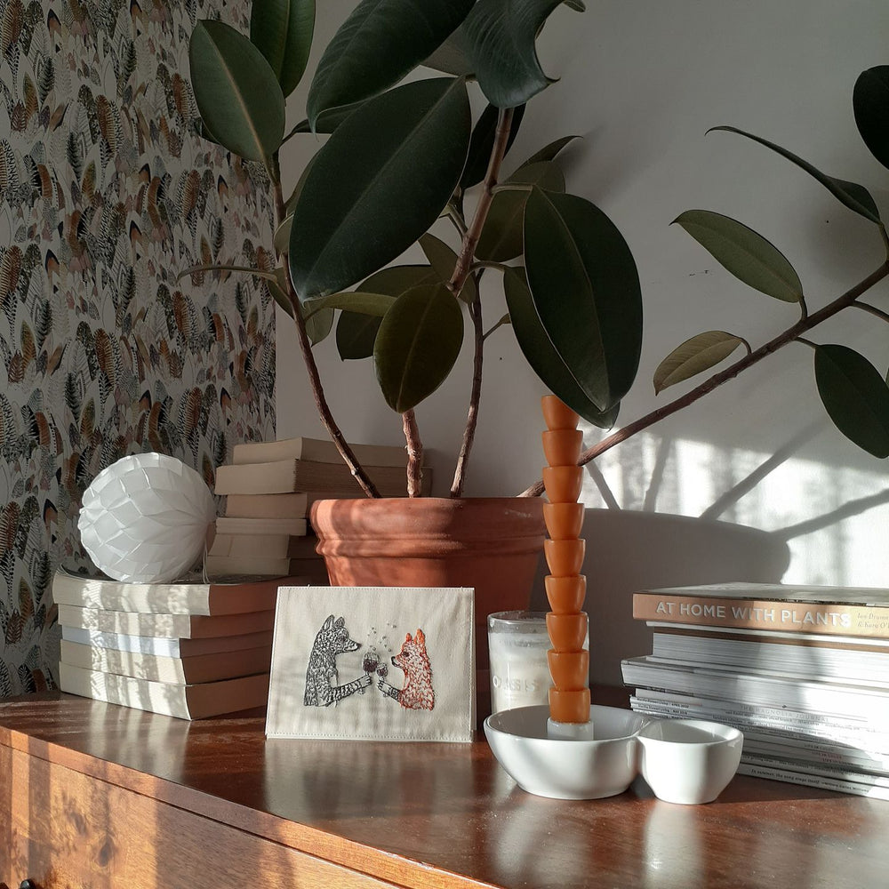 Stephanie’s original drawings transform into wondrous embroideries through hundreds of thousands of stitches. Her take on the natural world is our connecting thread.