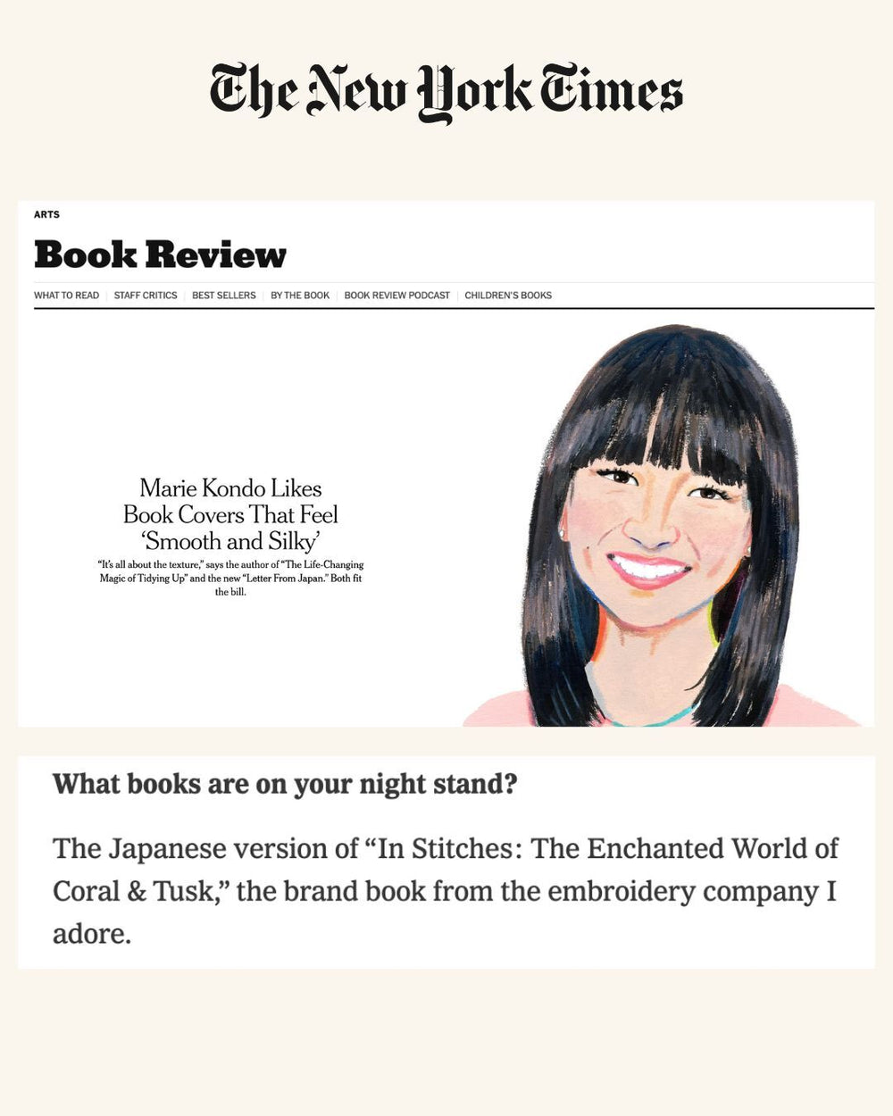 We were beyond excited to read that our book, In Stitches: The Enchanted World of Coral & Tusk sparks joy for none other than Marie Kondo herself!!