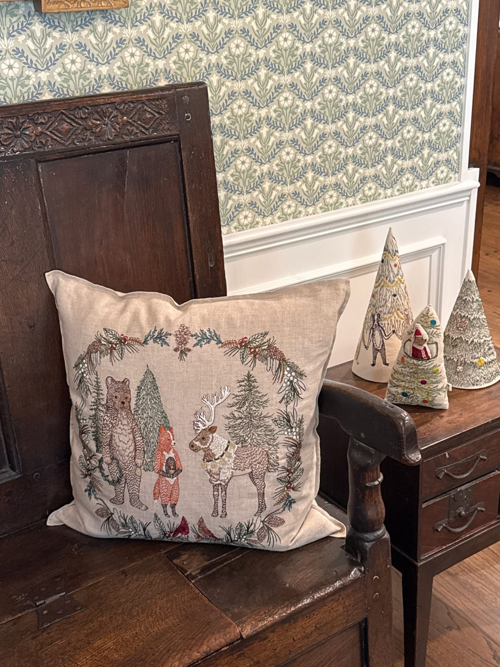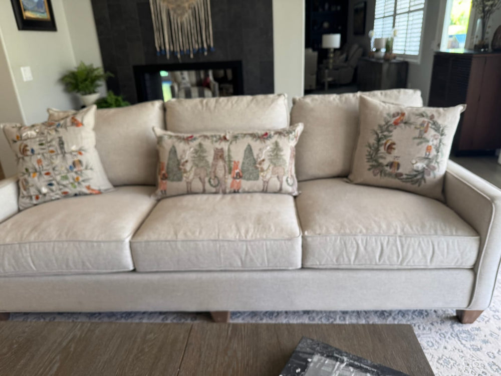 "This pillow is so beautifully done. The animals have such sweet faces. I typically do not buy Christmas pillows but absolutely fell in love with this and knew it would look beautiful in our home. I am so happy I ordered it and can’t wait to decorate! It looks darling with my other C&T Christmas treasures -- the Tree Trimmers Wreath Pillow and the sweet Christmas trees!!"
