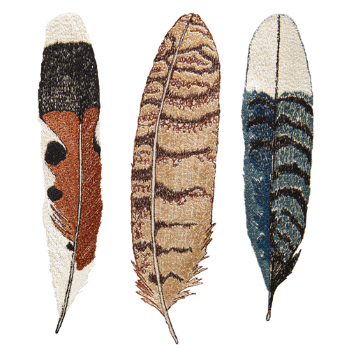 Welcome the harvest season with Wheat Harvest. This autumnal design is embroidered with a wreath of wild grasses, grains, stalks of wheat, and found feathers. Stitched in gold metallic, ecru, burnt orange, and blue-gray threads.