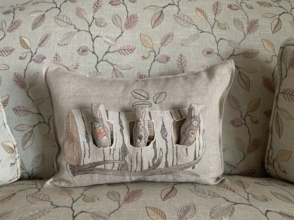 Aspen Log Bunnies Pocket Pillow
