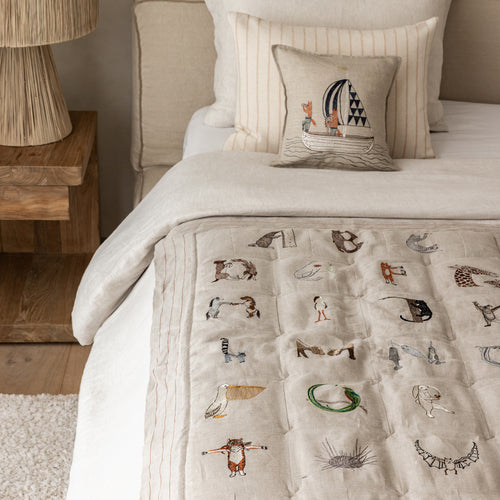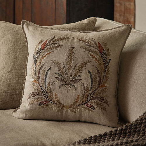 Embroidered on 100% linen. Unbleached, undyed, and Oeko-Tex Standard 100 certified.