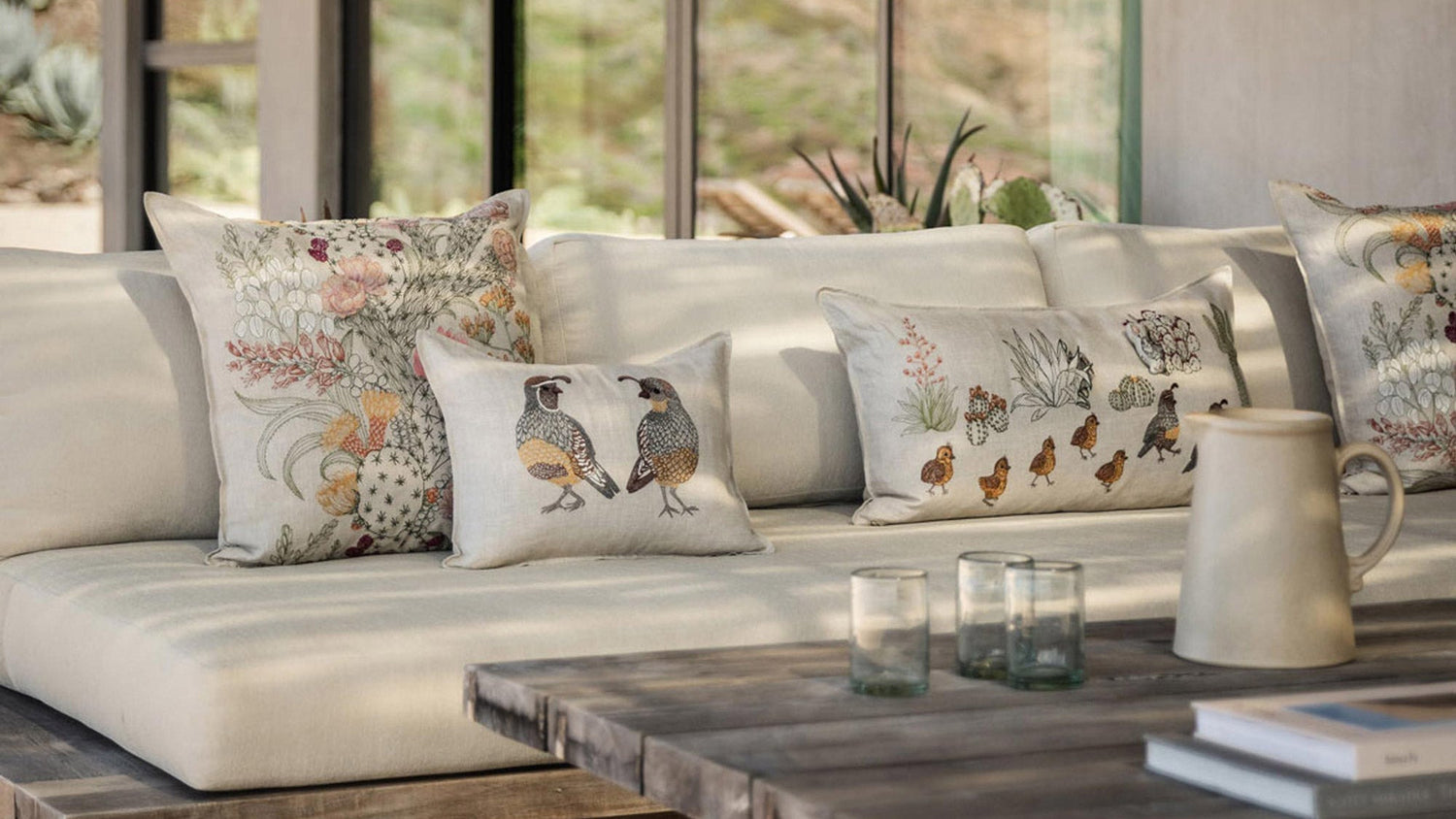 Our Desert designs are an invitation to escape into a vibrant world of towering saguaros and flowering cacti, where you’ll encounter incredible wildlife. Each embroidered pillow draws on the terrain of the American Southwest and explores the biodiversity of wildlife found in this unique environment.