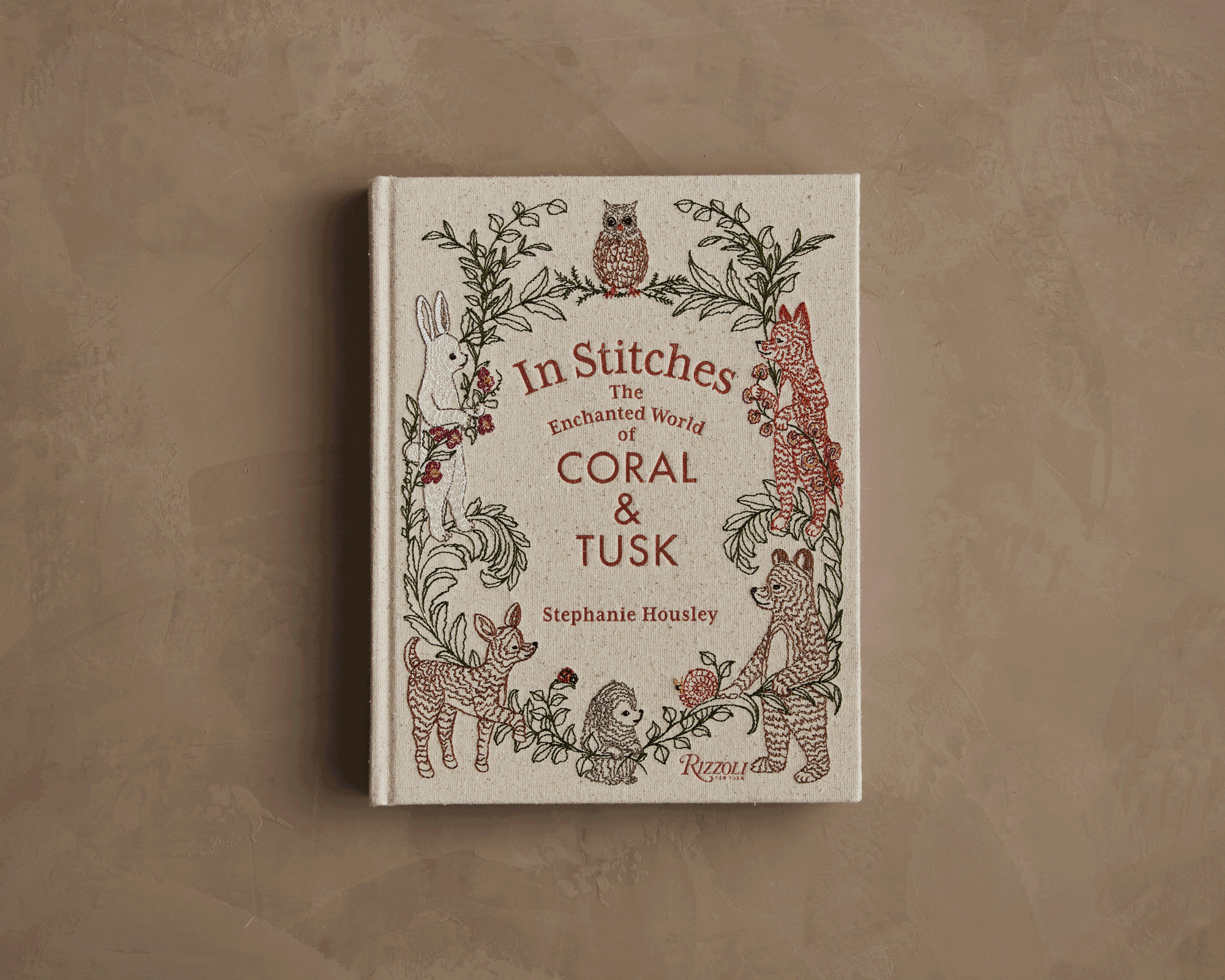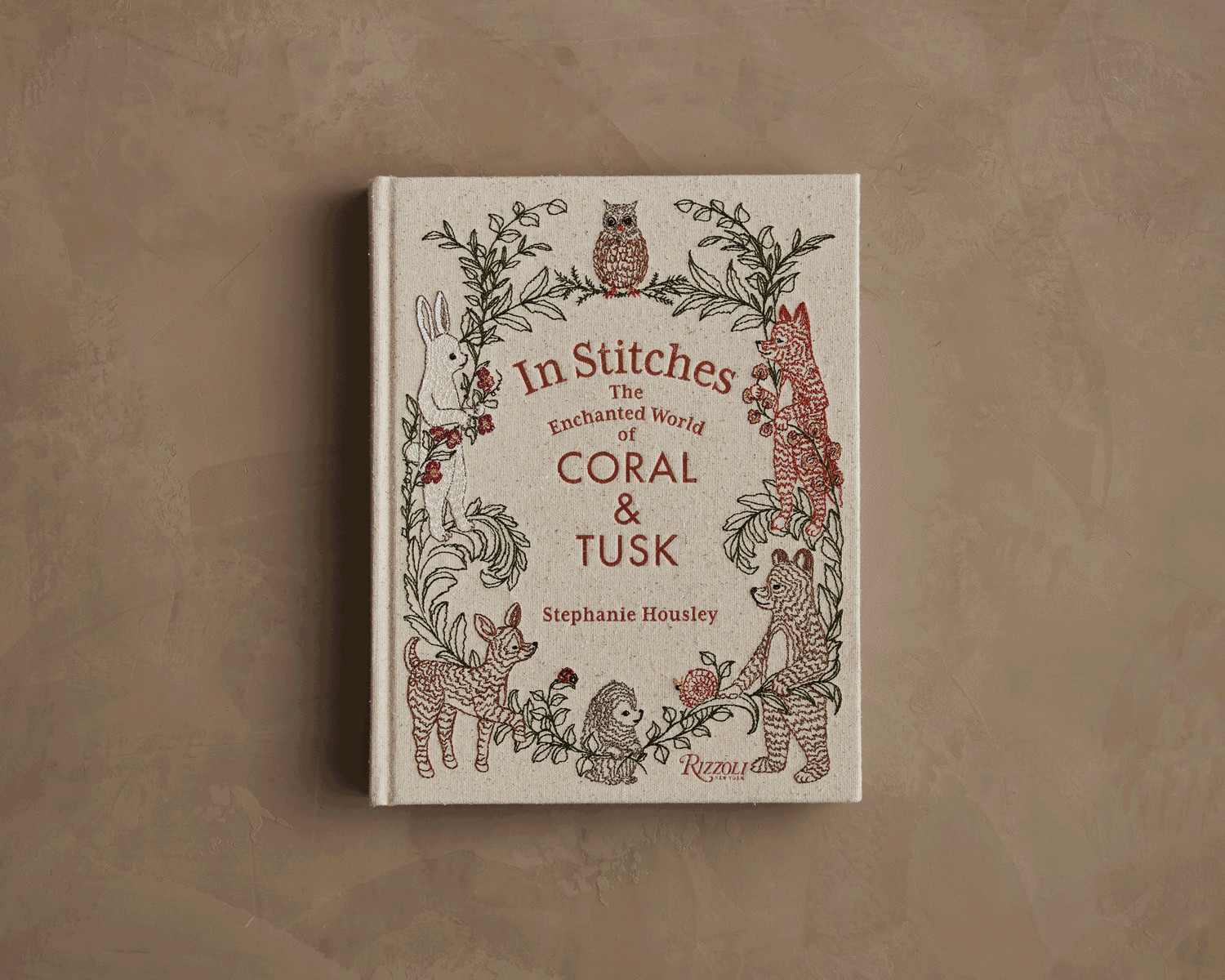 "In Stitches: the Enchanted World of Coral & Tusk" is an exploration of the story, craft and creative process of Coral & Tusk founder and artist Stephanie Housley, sharing a life's work of drawing and embroidery inspired by cherished memories and her joyous appreciation of the natural world. Packed with charming details, personal backstories and a sense of discovery, this gorgeous archive is easily enjoyed and appreciated by artists, designers, home enthusiasts and people of any age with an appreciation for craft. Stephanie’s unique sensibility, instantly recognizable for her expressive animal characters, imaginative habitats and environments, and complex stitch work is visual storytelling at its best. Each embroidery evokes a feeling of simple, happy nostalgia through the carefully sophisticated mark making of an artist whose process is as much an art as the final product.