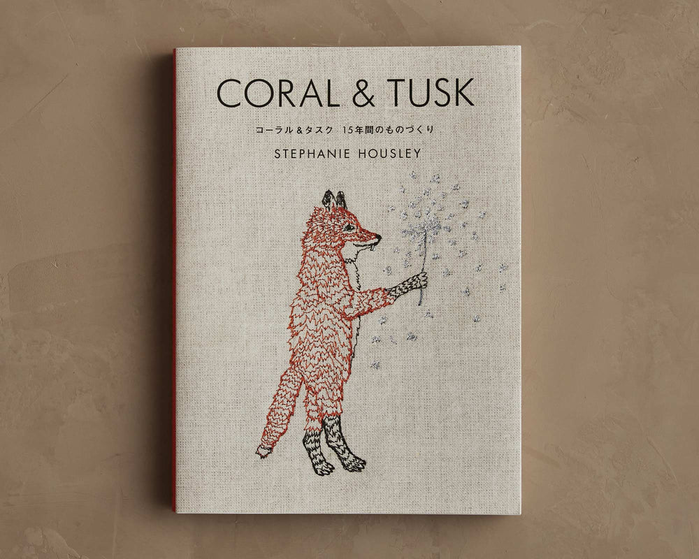 The first ever Coral & Tusk book, published in Japan in Japanese. Printed entirely in color, the book begins with images of Coral & Tusk designer and founder, Stephanie Housley’s life in Wyoming as captured by photographer Rinne Allen. In nine chapters, the book documents Coral & Tusk products chronologically over the course of 180 pages, describes the production process from start to finish, a look at the Nekomura San collaboration with cartoonist Yoriko Hoshi, and has 32 pages of interviews with Stephanie, stylist Kanae Ishii, and Coral & Tusk team members.