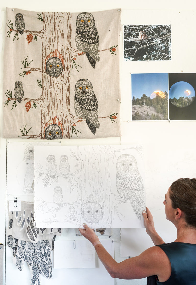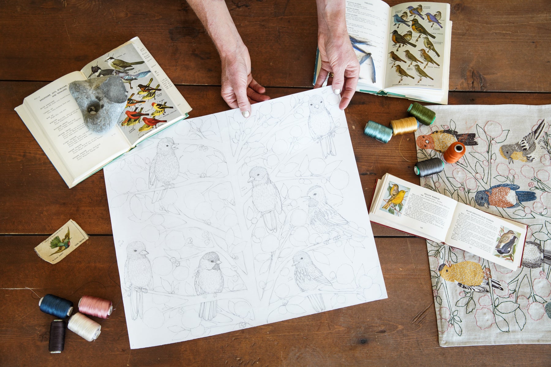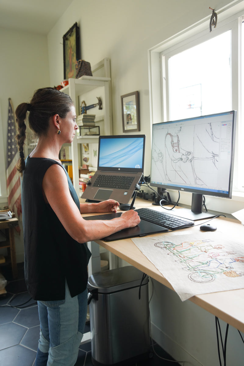 Stephanie then scans her original drawing, creating a digital file. She redraws the design, stitch by stitch, using specialized software.