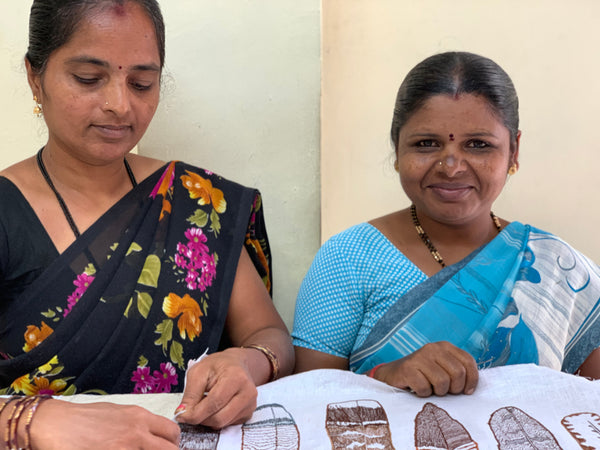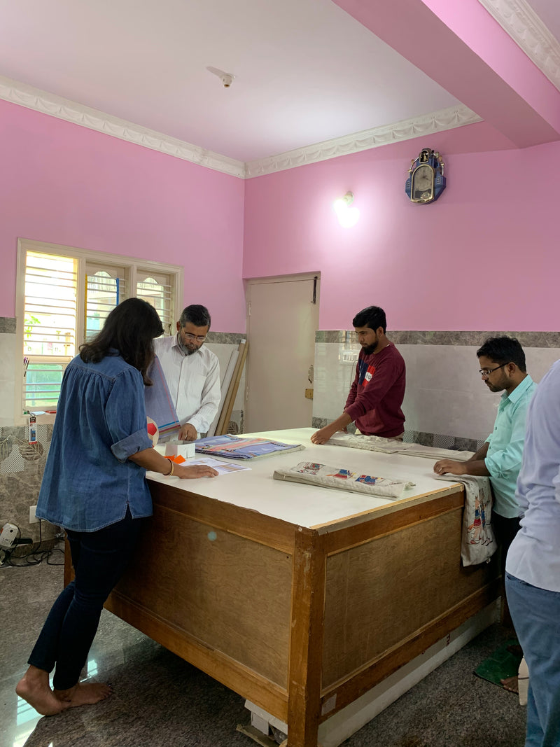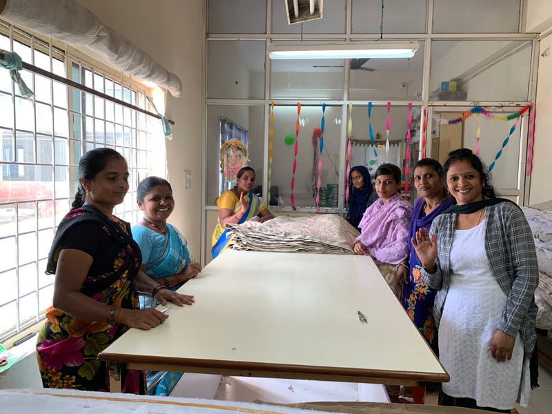 Once her designs are digitized, Stephanie connects with our partners in India to begin production. Together they work to perfect each design, finalizing layouts and colors. Our partners in India implement ethical working conditions and provide fair wages.