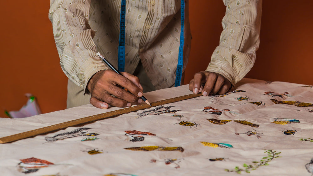 Once her designs are digitized, Stephanie connects with our partners in India to begin production. Together they work to perfect each design, finalizing layouts and colors. Our partners in India implement ethical working conditions and provide fair wages.