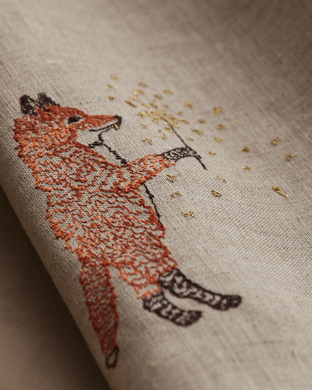 Embroidered on 100% linen with linen backing. Unbleached, undyed, and Oeko-Tex Standard 100 certified.